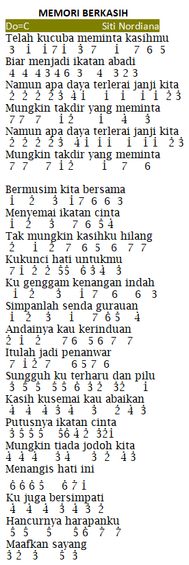 Notangka-Lagumu.blogspot.com – Memori Berkasih Versi Nella Kharisma – Untuk sobat notangka-lagumu.blogspot.com yang hoby memainkan alat musik, Piano, Pianika, Biola, Gitar, Suling, Keyboard, Recorder dan alat musik lainya yang ingin berlatih dan sedang mencari Chord Piano / cocok nih untuk sobat yang sudah buka artikel ini. Not Angka Lagu Memori Berkasih Versi Nella Kharisma Berikut ini aku sajikan … Baca Selengkapnya